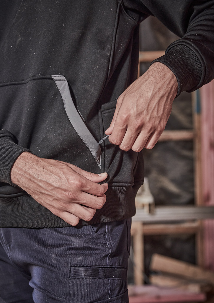 • Kangaroo pockets with zip closures to safely store all your items